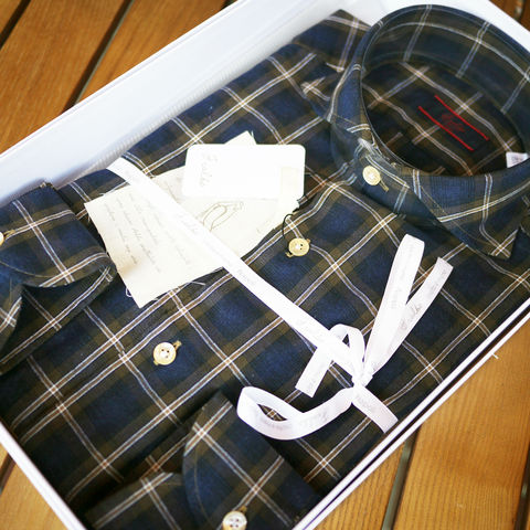 このシャツでは一部の箇所をハンドメイドするほか、各部のディテールや始末等に於いても、秀逸な仕事を見せており、それでいてプライスはアンダー3万円と言う、非常にコストパフォーマンスに長けたブランドとして、今シーズンより正規展開が始まりました。