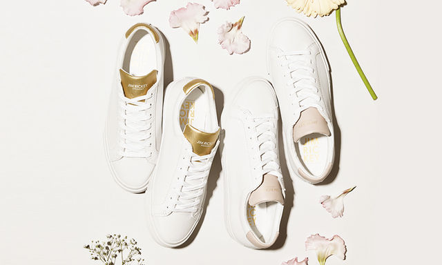 このクラシックでソリッドなホワイトのレザーが醸し出すノーブルな質感に、タンとヒールカップ上部に付けられたゴールドの色が挿し色としてだけ使われているのに、全く異なる雰囲気を作り出すのは、このスニーカーの整ったデザインだから。